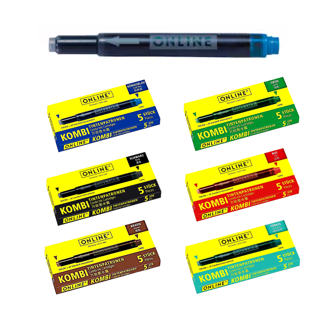 Entdecken Sie die vielseitigen Online Kombi-Tintenpatronen, die perfekt für viele Füller Modelle geeignet sind. Mit diesem praktischen Set erhalten Sie 5 Patronen, die Ihnen ein reibungsloses Schreiberlebnis bieten.