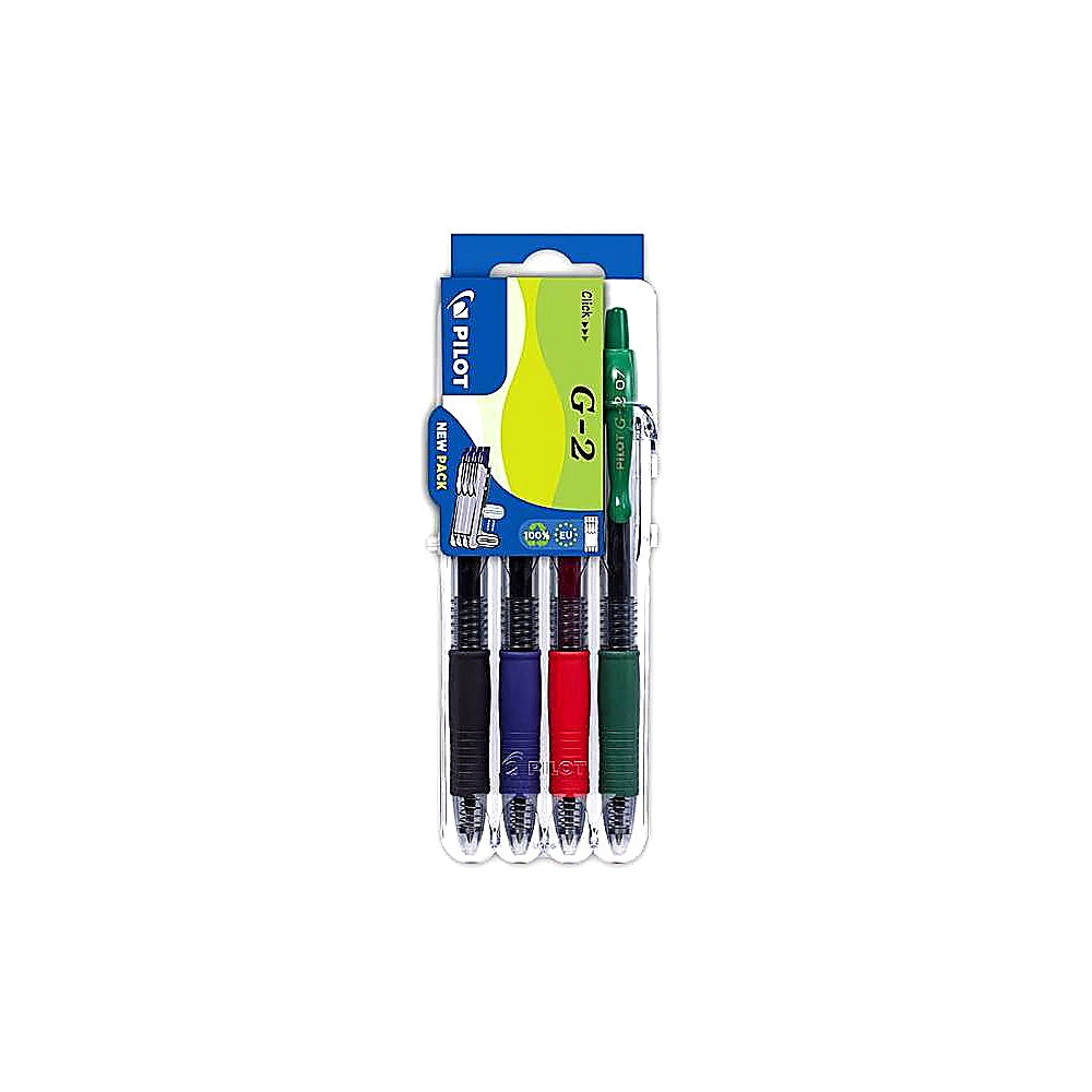 Entdecken Sie das Pilot G2 4er Set in den Farben schwarz, rot, blau und grün - perfekt für Schule und Büro!